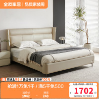 全友家居现代极简进口头层牛皮松软大靠包卧室家具皮床1.8m皮艺床软床