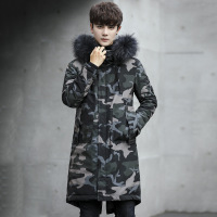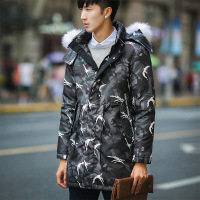 特价迷彩中长款男式羽绒服2017冬季新品青年修身连帽毛领羽绒外套