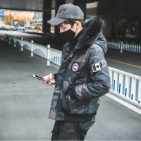 羽绒服男2017港风原创冬季新品男士中长款连帽毛领迷彩羽绒服外套迷彩