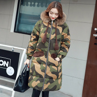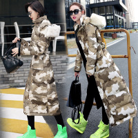 冬季外套女2017新款韩版中长款连帽过膝真毛领迷彩羽绒服