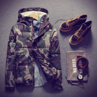 2017男士外套冬季潮流冬装青年迷彩棉衣韩版修身学生棉服连帽棉袄