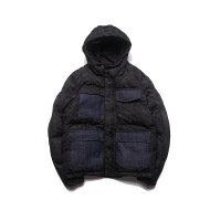 CZS港仔冬季新款青年宽松迷彩连帽牛仔口袋拼接棉衣男士棉服黑色