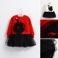 [1件5折价:82.5]moomoo童装女童连衣裙春秋装新款针织拼接网纱长袖儿童公主裙