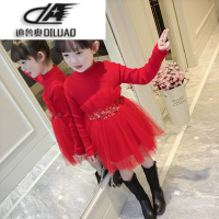 女童连衣裙加绒加厚2017新款冬装儿童新年装宝宝针织拼接公主裙子