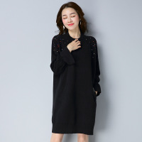 秋冬新款肩膀镶钻公主袖针织连衣裙宽松纯色中长款毛衣女