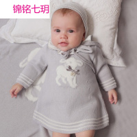 锦铭七玥春秋女童连衣裙宝宝圆领针织毛线背心裙无袖婴儿公主裙周岁生日裙