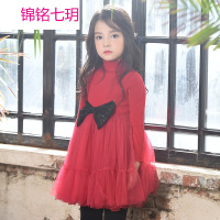 锦铭七玥童装代发2017秋季新款韩版女童针织拼接长袖连衣裙公主裙蓬蓬裙
