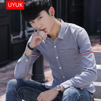 UYUK 2017新款棉质牛津纺衬衫秋冬男士长袖白衬衣青少年休闲学生打底修身韩版潮
