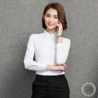 棉质斜纹女士衬衫白色长袖职业装女时尚气质酒店工作服白衬衣