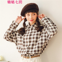 锦铭七玥2018季新款韩版女士衬衫长袖格子时尚百搭o棉质衬衣夹克衫