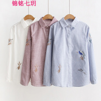 锦铭七玥2018春季新款女装刺绣鸟棉质宽松大码衬衫女长袖上衣 833