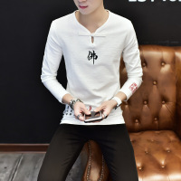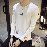 2017新款秋季棉麻t恤男士长袖中国风大码民族风碎花上衣打底衫体恤潮男装
