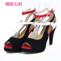锦铭七玥搭扣凉鞋细高跟女鞋子2018春夏新款流行韩版防水台鱼嘴鞋大码