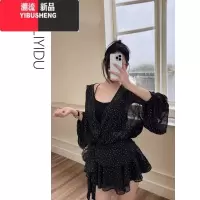 YIBUSHENGMLYD/定制 大码法式V领黑色波点衬衫连衣裙性感收腰显瘦雪纺短裙