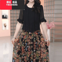 YIBUSHENG假两件轻羽丝雪纺连衣裙女遮肉2024季新款时尚显瘦碎花套装裙子