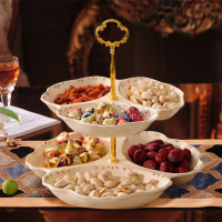 欧式陶瓷双层水果盘客厅创意蛋糕点心盘多层分格零食盒干果盘家用