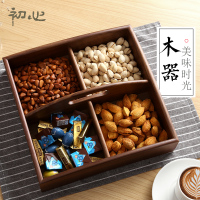 初心欧式零食分格干果糖果盘客厅时尚创意竹制托盘瓜果盒水果盘子