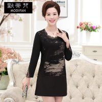 默蒂梵富贵婆17年中老年女装春季新品蕾丝镶钻裙妈妈装荷叶领韩版连衣裙