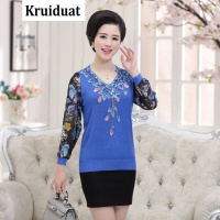 Kruidvat2017中老年女装春装新款妈妈装九分袖韩版镶钻纱袖针织衫Z004