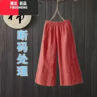 YIBUSHENG亚麻阔腿女裤子春女装高腰大码直筒裤小个子棉麻中年休闲裤