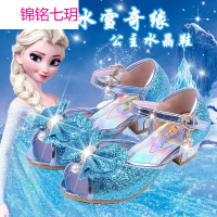 女童高跟鞋蓝色儿童凉鞋冰雪奇缘公主鞋3 4 5 6 7 8 9岁女童凉鞋