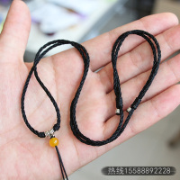 纯银扣黑色皮绳项链绳子挂件绳挂坠绳男女款戒指玉佩黄金吊坠挂绳_3