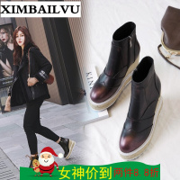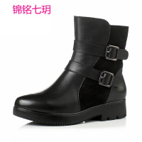 锦铭七玥新品春秋平底真皮短筒靴子黑色低跟马丁靴女短靴小码32