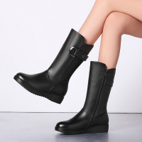 梵姿绰秋冬真皮女靴平跟中筒靴平底妈妈靴子中年中老年女士羊毛绒毛棉靴黑色羊毛内里