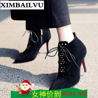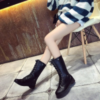 2017新款马丁靴杨幂baby同款真皮系带女靴厚底粗跟百搭个性防滑登山靴中筒黑黑色