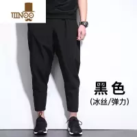 YANXU夏季薄款九分裤男宽松冰丝休闲胖子加肥加大码裤子哈伦裤潮