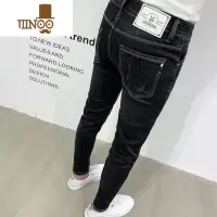 YANXU潮牌黑色小脚牛仔裤男薄款韩版修身九分裤子刺绣弹力紧身长裤
