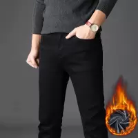 金盾黑色牛仔裤修身长裤子