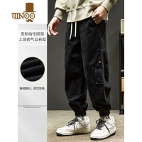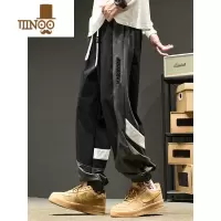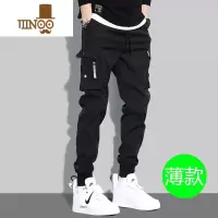 YANXU工装裤男美式潮牌痞帅宽松束脚裤夏季薄款百搭黑色机车运动休闲裤