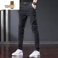 YANXU男士牛仔裤修身小脚裤夏季春季黑色百搭高端休闲长裤子男
