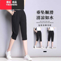 YIBUSHENG冰丝七分裤女季薄款高腰弹力宽松大码显瘦休闲裤百搭黑色小脚裤