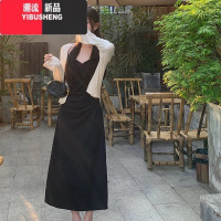YIBUSHENG法式赫本风黑色吊带连衣裙女季高级感气质收腰显瘦海边度假长裙