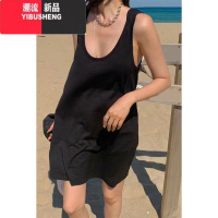 YIBUSHENG特大码300斤性感低胸吊带背心裙女小胖MM百搭宽松休闲连衣裙季2