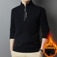 半高领拉链毛衣男冬季新款加绒加厚保暖羊毛混纺一体奥粒绒打底衫