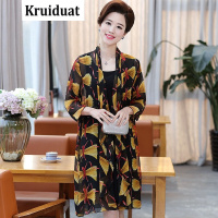 eosciy/Kruidvat2017春季新款中老年女装时尚印花雪纺韩版七分袖中长款开衫Z