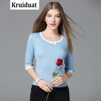 Kruidvat2017春季女装新款蝴蝶结立体装饰七分袖针织衫修身上衣M8