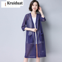 Kruidvat2017春季新款女装薄款韩版七分袖中长款女式针织开衫紫色均码