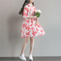 森女系棉麻连衣裙夏季新款文艺印花中长款宽松七分袖衬衫裙两件套