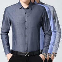 春季新款丝光棉男式长袖衬衫薄款商务纯色青年男士免烫衬衣
