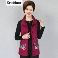 Kruidvat中老年人女装春季时尚新款妈妈装马甲绣花上衣方领开衫装售Z041