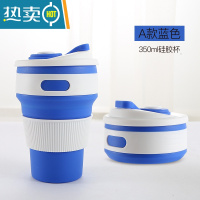 敬平折叠水杯便携式可装沸水杯子户外旅行硅胶伸缩杯压缩漱口杯 深蓝-350ml-X洗漱杯