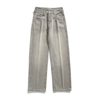 宽松直筒港风牛仔裤男做旧百搭松紧牛仔裤水洗拖地裤男孩