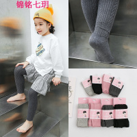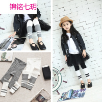 锦铭七玥2017春秋新品 韩版童装螺纹儿童打底裤 女童纯棉 九分拼接连裤袜