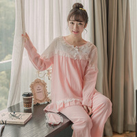 春秋季纯棉女士长袖长裤睡衣韩版卡通休闲大码全棉家居服两件套装