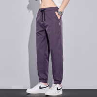 春夏新款冰丝休闲裤子男运动大码束脚裤松紧腰百搭长裤子