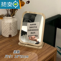 敬平ins风木质镜子可爱台式化妆镜女大号桌面折叠梳妆镜学生宿舍便携 竖向折叠支撑款 送白色涂鸦笔便携式用镜
